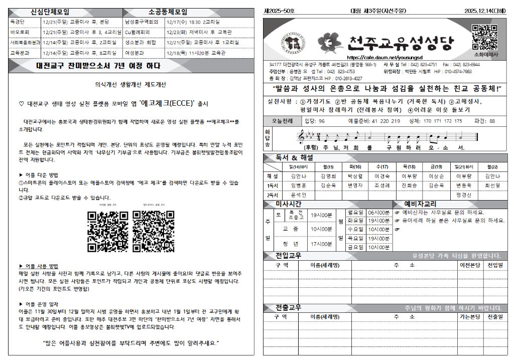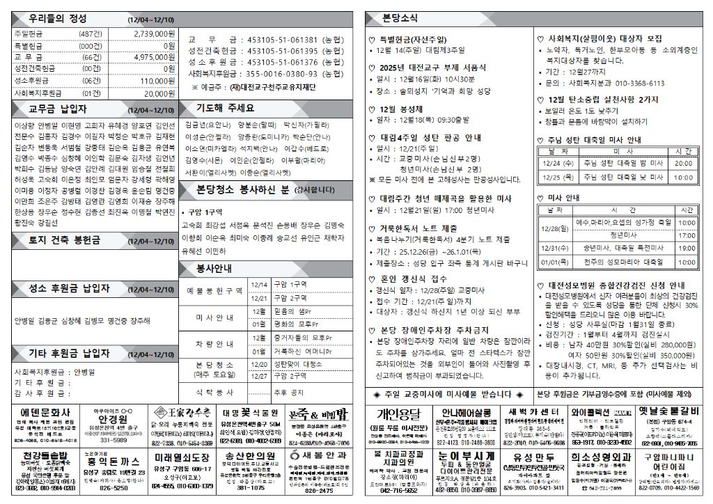 2025.12.14 대림3주일/자선주일 주보 작성자김덕남프란치스코|작성시간25.12.15|조회수151 목록 댓글 0 글자크기 작게가 글자크기 크게가 다음검색 현재 게시글 추가 기능 열기 북마크 공유하기 신고 센터로 신고 댓글 댓글 0 댓글쓰기 답글쓰기 댓글 리스트