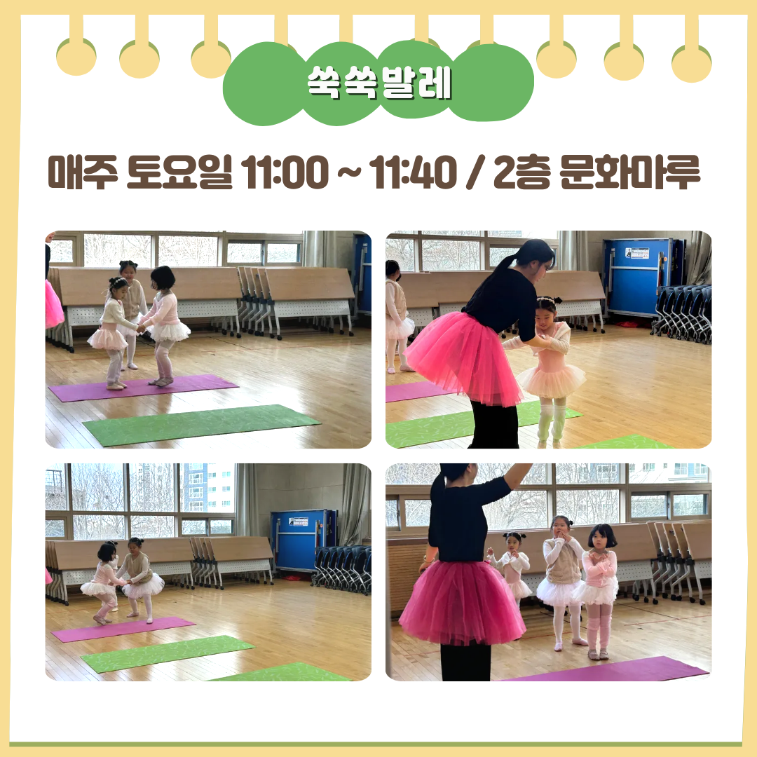 오늘 쑥쑥발레 시간에는 발레 기본자세를 바탕으로 점프 동작을 배우는 시간을 가졌습니다~