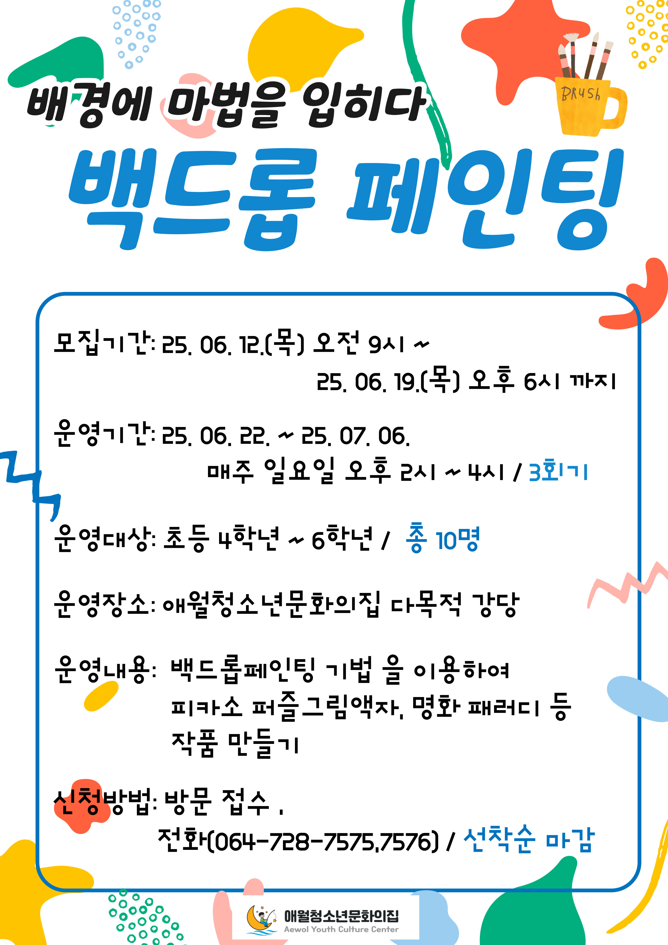 2025 배경에 마법을 입히다! 백드롭 페이팅 프로그램 안내 작성자램프의요정|작성시간25.06.10|조회수98 목록 댓글 0 글자크기 작게가 글자크기 크게가 다음검색 현재 게시글 추가 기능 열기 북마크 공유하기 신고 센터로 신고 댓글 댓글 0 댓글쓰기 답글쓰기 댓글 리스트