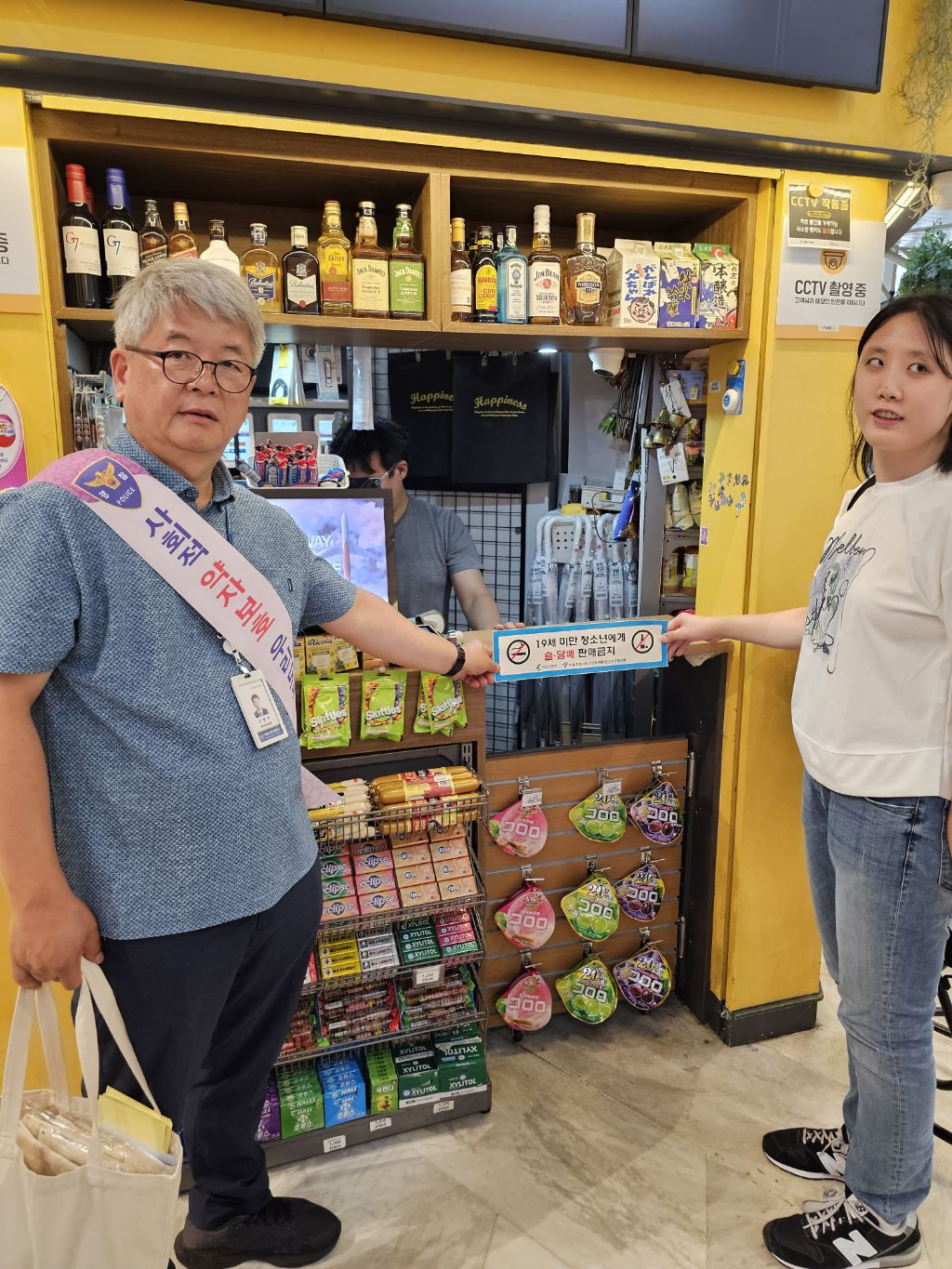 2024.8.1(목).16:50 ~ 18:30 서울한강변 편의점.고속더미널 상가,신세계백화점 강남점 주변에서,여름방학기간 청소년유해업소출입 등에 대한 점검.단속활동을 청소년육성회 ,서초구청.서초경찰서 여성청소년과 합동으로 편의점 등, 청소년유해환경업소 출입여부,술.담배 판매 등에 대한 점검 하면서, 청소년유해환경 감시단 활동을 펼쳤다.