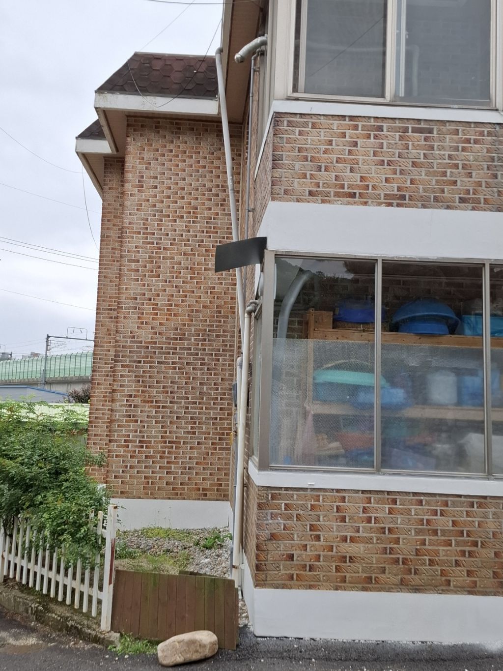 세상에나 철판 홈통을 해야지 햇볕에 삭아버리는 pvc 배관으로 빗물통을 했다 건드리면 부서질것 같은 부식된 pvc 빗물통이다