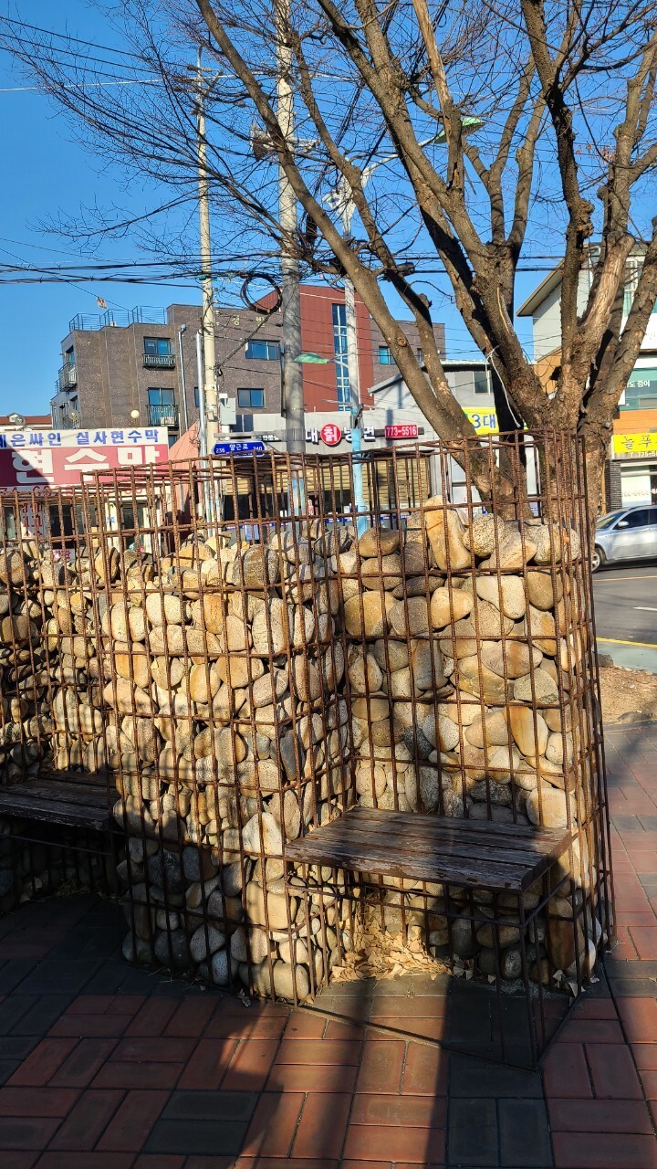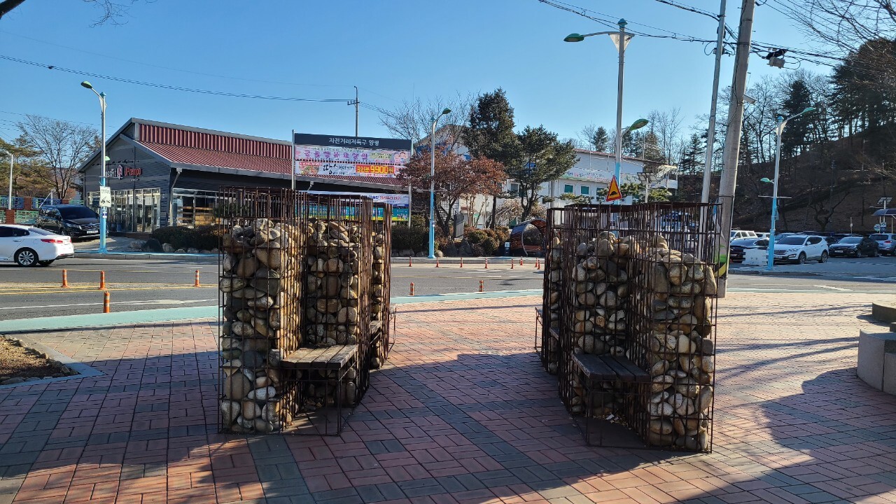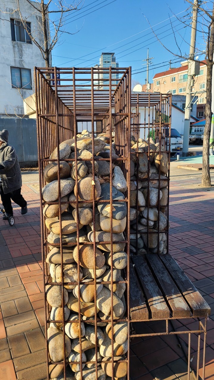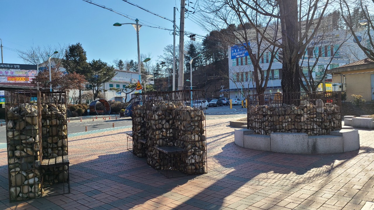양평읍 사무소앞에 게비온 의자 또한 예술이다