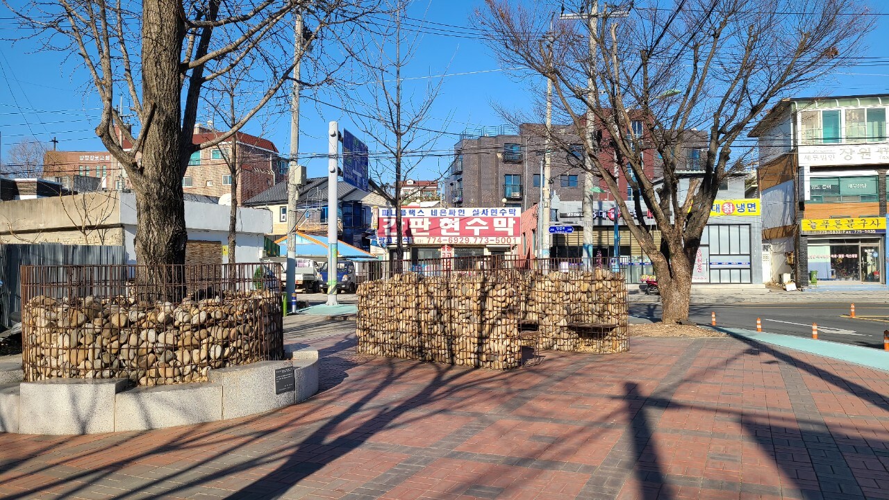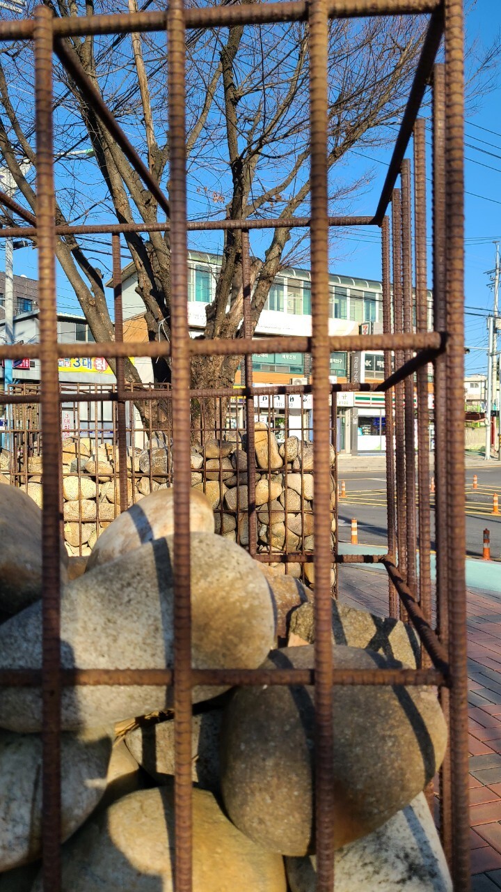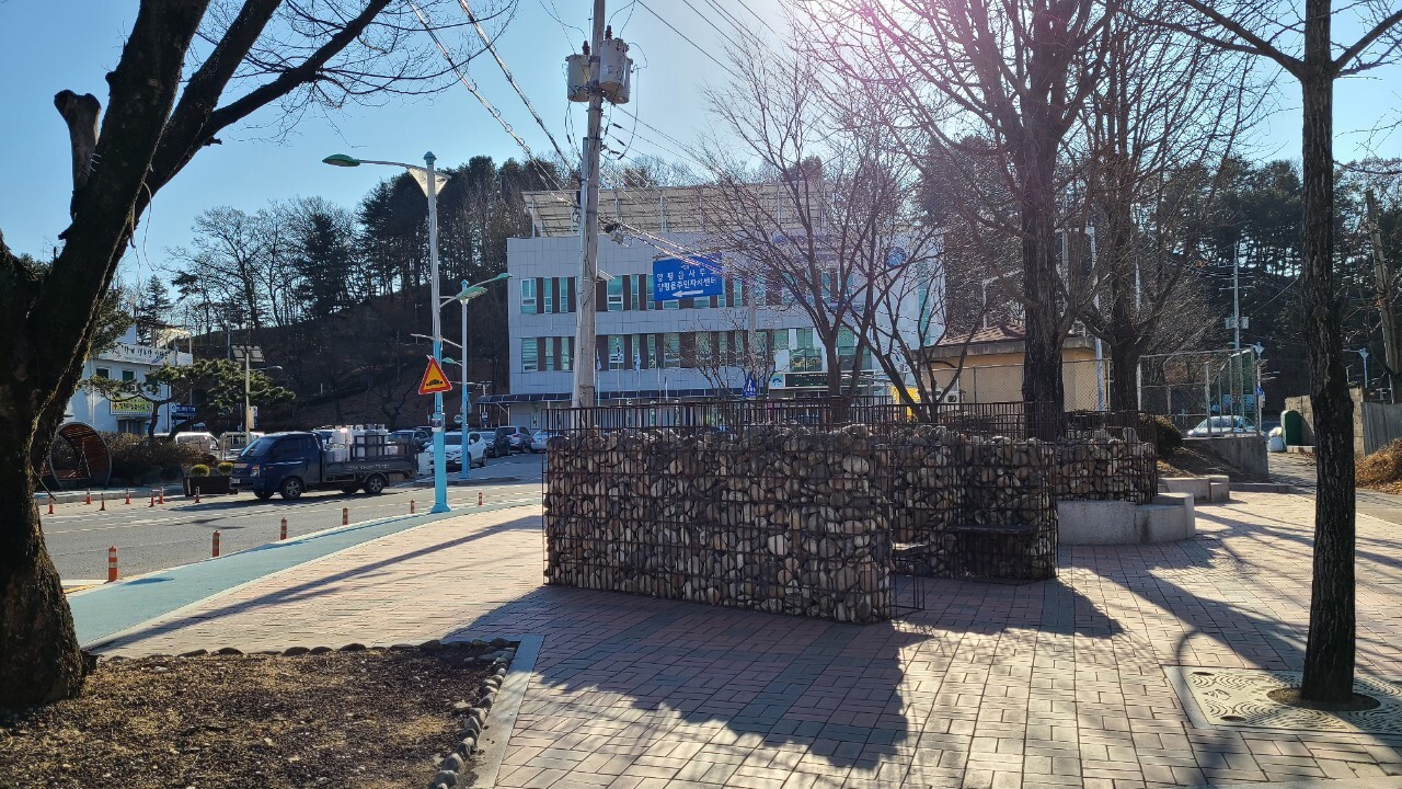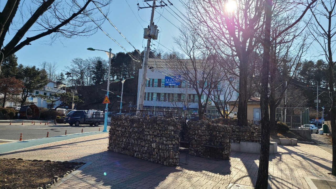 양평읍 사무소앞에 게비온 의자 또한 예술이다