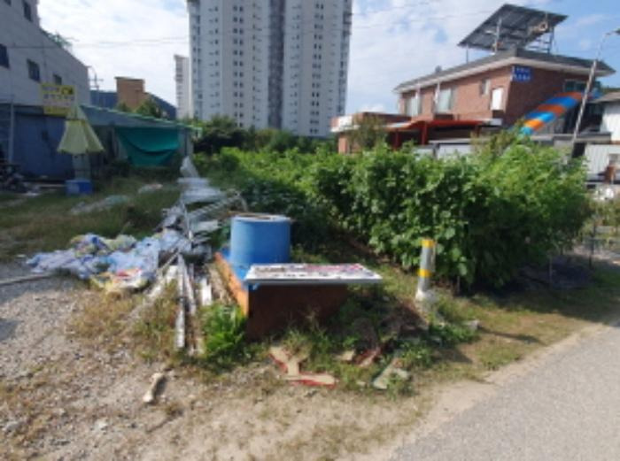 주의사항1. 농지취득자격증명 필요(미제출시 매수보증금 반환하지 않음) 2. 지상 소재 제시외 컨테이너박스(단층창고 약27㎡), 부속창고(철파이프조 선라이트지붕 단층창고 약36㎡) 매각 제외 3. 지목은 '답'이나 현황 주거지역 내의 토지로서 '나지'상태임