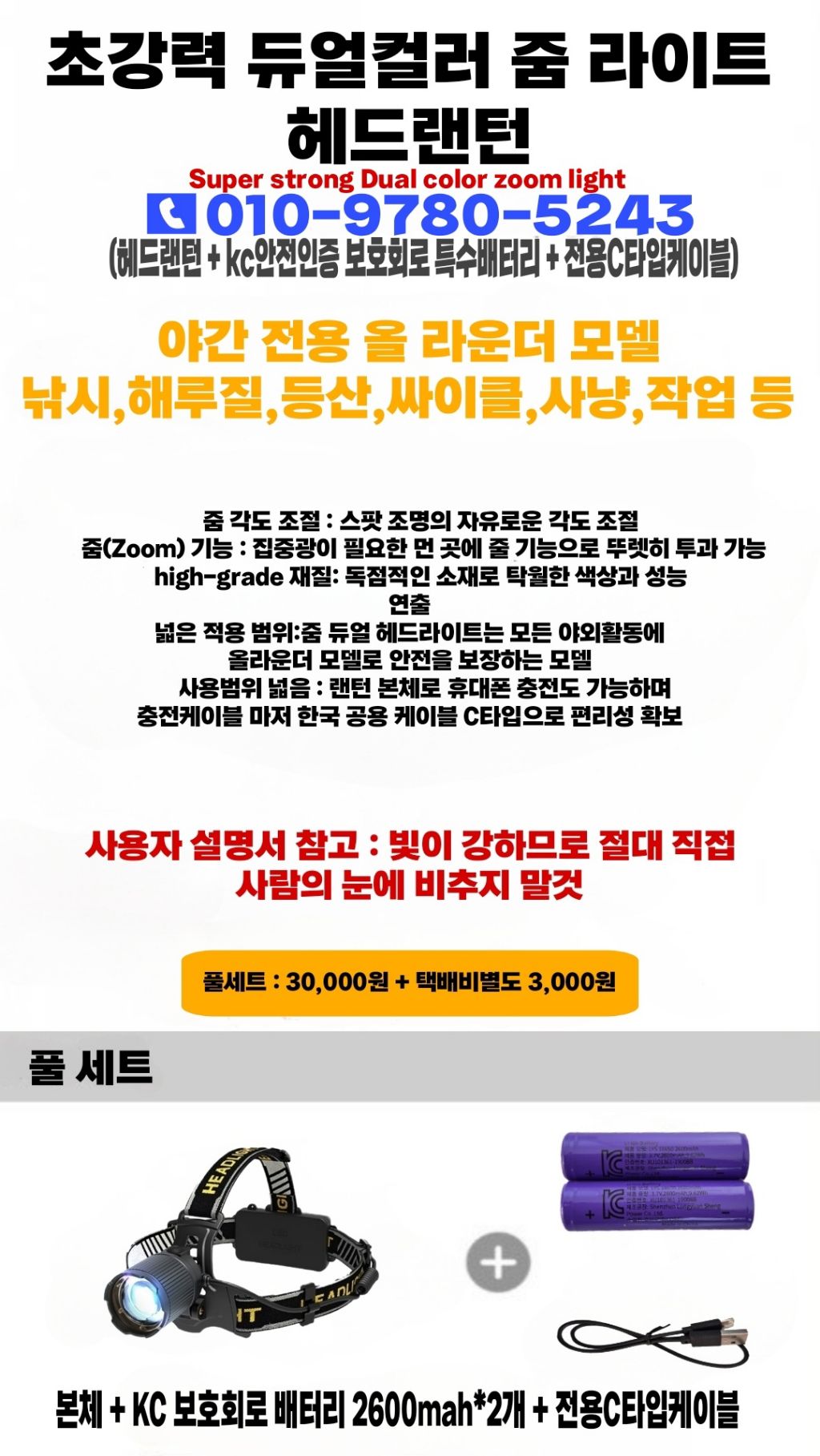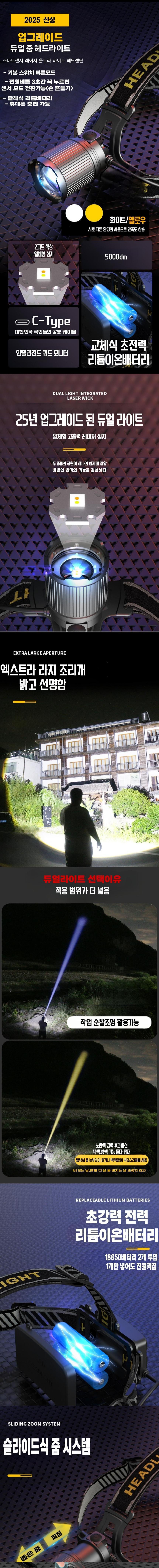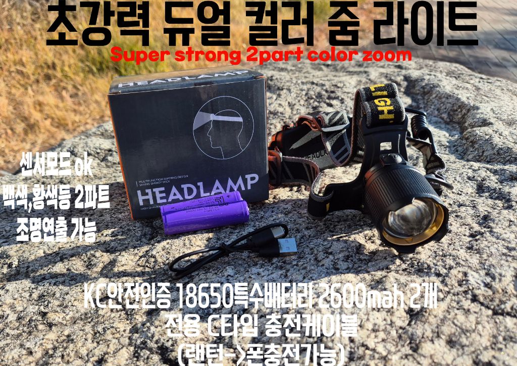 #안전인증 LED 2컬러 초강력 줌 헤드랜턴