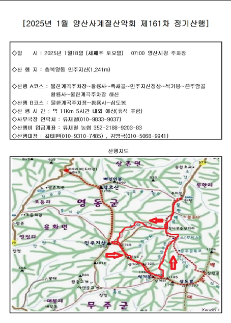 제161차 양산사계절산악회 충북영동 민주지산 정기산행 알림