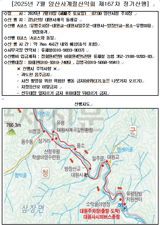 * 출발 장소 및 시간 : 양산 시청 주차장, 07:00 출발