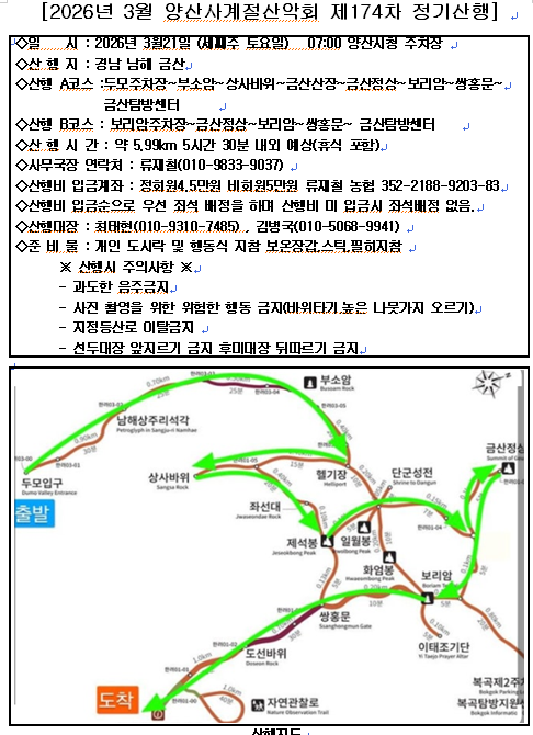 * 출발 장소 및 시간 : 양산 시청 주차장, 07:00 출발