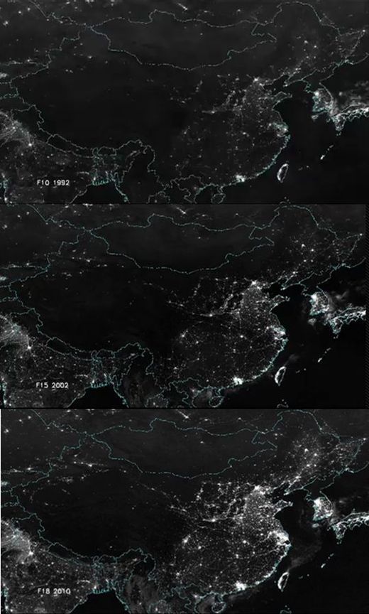 기사에서 와이어드는 중국의 야경변화에 주목, 점점 성장해가는 모습을 그렸다. 실제로 중국대륙은 시간이 갈수록 야경이 밝아지고 있었으며 이는 곧 경제발전 속도를 의미했다.