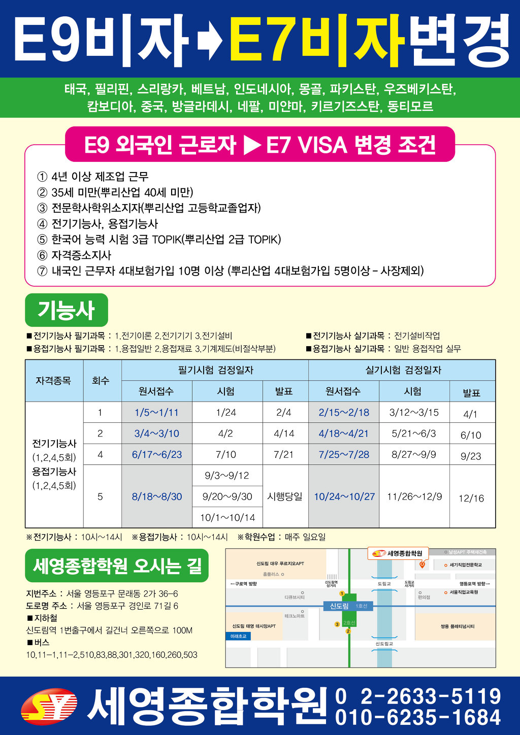 외국인근로자를 위한 교육을 진행합니다. 비자변경 잘 알면 돈법니다.(E9->E7) 작성자동포총괄본부장|작성시간16.02.05|조회수83 목록 댓글 0 글자크기 작게가 글자크기 크게가 다음검색 현재 게시글 추가 기능 열기 북마크 공유하기 신고 센터로 신고 댓글 댓글 0 댓글쓰기 답글쓰기 댓글 리스트