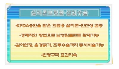 실리콘패드 같은 경우 우선 수술 비용이 고가이고 ( 200만원 정도 ) , 수술 후 초반에 거부반응으로 염증이 생겨