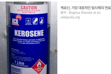 액체 연료로는 액체수소(H2), 액체 히드라진(N2H4), 케로신(kerosene)등이 있다. 액체수소는 환경 친화적이며 비추력이 매우 큰 연료이다. 히드라진은 촉매와 접촉하면 질소, 수소, 암모니아 가스로 분해된다. 발열이 되면서 나오는 온도는 무려 1000oC 이상이 될 수 있다. 케로신 연료는 액체 산소를 산화제로 사용하여 1단계의 추진 동력으로 사용하는 경우가 많다. 나로호도 케로신과 액체 산소를 사용하였으며, 220 여초 동안 연소하였다. 케로신은 가연성 탄화수소로 원유를 분별 증류하면 얻을 수 있다. 원유를 가열하여 약 150-275oC 정도에서 증발되어 나온 기체를 실온으로 식히면 케로신을 얻는다. 케로신은 제트 엔진의 연료로 흔히 사용되는 기름이다. 로켓 연료로 사용될 때는 케로신을 휠씬 더 엄밀하게 정제하여야 한다. 특히 로켓용 케로신에는 황, 방향족 화합물을 포함한 불포화 탄화수소들이 다른 항공유보다 휠씬 적게 포함되어 있다. 황은 높은 온도에서 로켓 엔진을 망가트리는 원인 물질이며, 불포화 탄화수소들은 보관 중에 연료가 변질되어 원하는 만큼의 비추력을 얻을 수 없기 때문이다. |