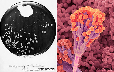 그냥 재수 없는 일이라고 넘길 수도 있었다. 그러나 그는 곰팡이가 포도상구균의 성장을 막고 있다는 것을 알아차렸다. 그가 평소 항균작용에 관심을 가지고 있었기에 그런 해석을 내릴 수 있었을 것이다. 나중에 알려진 사실이지만, 푸른곰팡이의 대부분은 페니실린을 만들지 못하고 오직 페니실리움 노타툼(Penicillium notatum)만이 페니실린을 만든다. 그리고 이 특별한 곰팡이는 아래층의 라투슈의 연구실에서 올라와 플레밍의 페트리 접시에서 자리를 잡고 자란 것이었다. | |