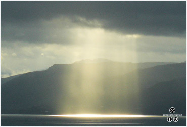 바다에서 증발된 수증기 때문에 구름 사이로 비친 햇빛이 산란되어 보인다. <출처: (cc) resk at Wikipedia.org> |