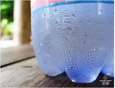 수증기가 공기 중에서 차가운 물병의 표면과 접촉하면 액체로 응축된다. <출처: (cc) acdx at Wikipedia.org> |