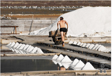 염전에서는 증발을 이용해 소금을 얻는다. <출처: (cc) rude at Wikipedia.org> |