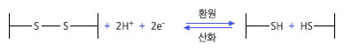 단백질에 있는 시스테인의 티올기(-SH)는 이황화 결합을 만들어 단백질의 접힘과 3차원적 구조를 만드는데 결정적인 역할을 한다.. 이황화 결합은 또한 케라틴, 머리카락, 깃털의 강도를 높이고 물에 잘 녹지 않도록 한다. ‘머리파마’는 머리카락에 있는 케라틴을 환원시켜 이황화 연결을 끊어 풀어준 다음, 원하는 머리 형태로 꾸미고 다시 산화시켜 이황화 결합을 만들어 그 형태로 고정시키는 것이다. 그리고 메티오닌은 생체 내에서 다른 생물 분자들을 메틸화시키는 시약으로 작용한다. | |