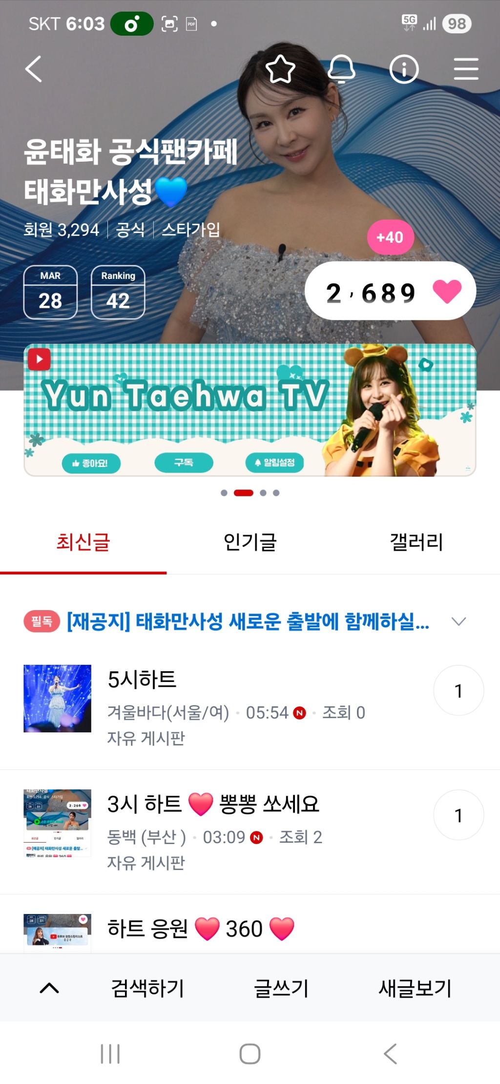 하트 작성자연꽃시흥|작성시간26.03.28|조회수10 목록 댓글 1 글자크기 작게가 글자크기 크게가 다음검색 현재 게시글 추가 기능 열기 북마크 공유하기 신고 센터로 신고 댓글 댓글 1 댓글쓰기 답글쓰기 댓글 리스트 작성자성호/대전 | 작성시간 26.03.28 new 좋은하루되셔유 ~ 이미지 확대 댓글 전체보기