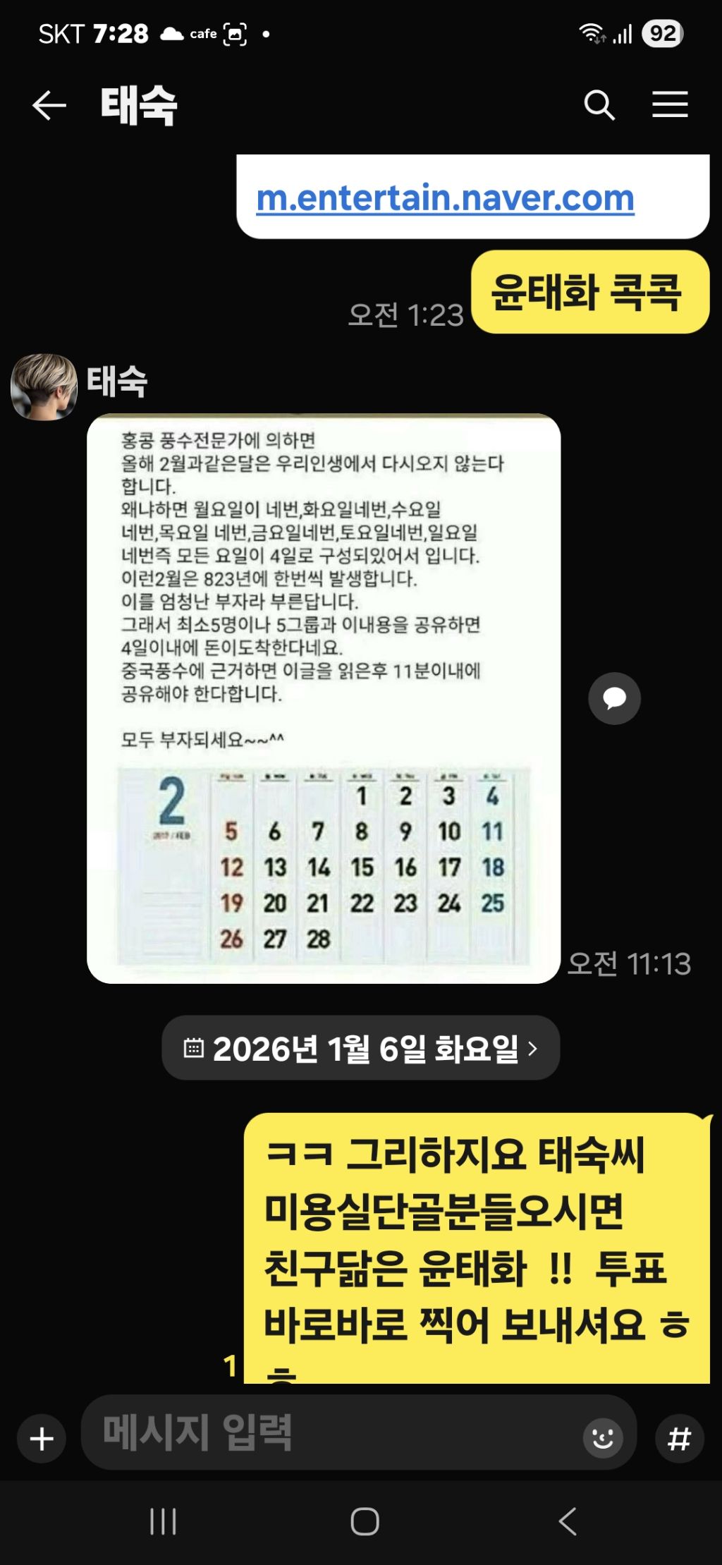 미용실도 작성자칠공e젤|작성시간26.01.06|조회수50 목록 댓글 6 글자크기 작게가 글자크기 크게가 짐 투표만 잘되면 진쨔 태화만사성암니다 다음검색 현재 게시글 추가 기능 열기 북마크 공유하기 신고 센터로 신고 댓글 댓글 6 댓글쓰기 답글쓰기 댓글 리스트 작성자강냉이(경기) | 작성시간 26.01.06 칠공대사님 항상 든든한 친정 아버님 같습니다. 👍 작성자지현맘(경기) | 작성시간 26.01.06 칠공님 최고 쩨리야 감따 ^^ 작성자민경(경기)스탭 | 작성시간 26.01.06 작성자겨울바다(서울/여) | 작성시간 26.01.06 수고하셨습니다 ^^ 작성자정성범/대전 | 작성시간 26.01.06 댓글 전체보기