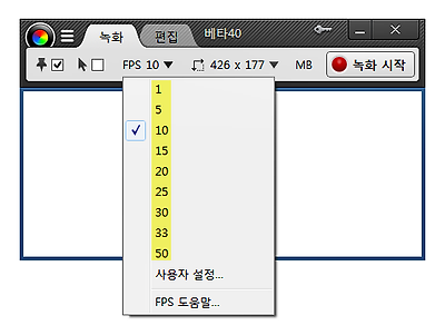 ▲ 꿀캠 베타버전. 무료로 사용할 수 있습니다. 단, 움짤 이미지 10초 제한.