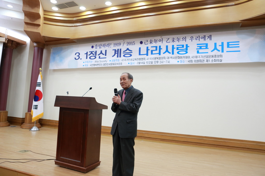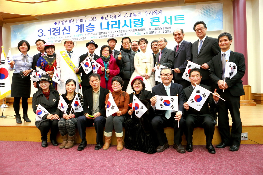 [스크랩] 3.1 정신 계승 나라사랑 콘서트 작성자행복이|작성시간15.02.16|조회수41 목록 댓글 0 글자크기 작게가 글자크기 크게가 응답하라! 1919/2015 乙未年이 乙未年의 우리에게 3.1 정신 계승 나라사랑 콘서트 주최/주관 aha society 공동주최: 사)국가인성교육 진흥협회.사)국사광복중앙회.대)역사 문화아카데미.사)태극기 선양운동중앙회 후원:국민행복멘토단.대한민국파워 지식포럼 장소:국회의사당 제1소회의실 일시:2015년2월14일 오후3~7시 다음검색 스크랩 원문 : 사진과 동영상을 만드는 사람들 현재 게시글 추가 기능 열기 북마크 공유하기 신고 센터로 신고 댓글 댓글 0 댓글쓰기 답글쓰기 댓글 리스트