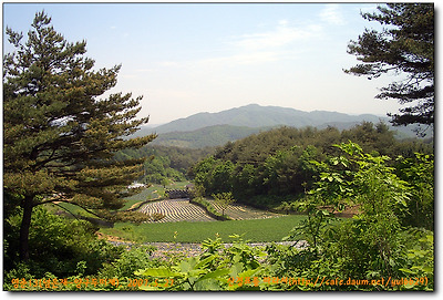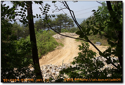 그 우측 아래로 밭들이 있고 건너편에 과수원인듯한 농장집이 보인다.그냐 길따라 올라가면 이곳를 볼 수 없다.