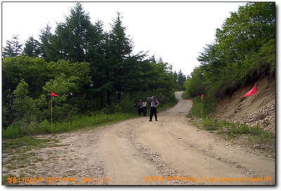 우측으로 꺽어서 내려서 울창한 낙엽송지대를 올라야한다.(6번도로에 제일 가까운지점으로 차소리도 가까이 들린다)