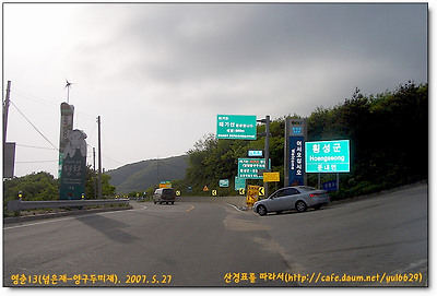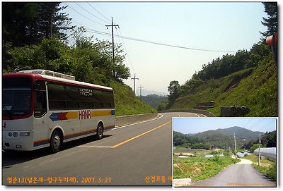 둔내IC를 나가 둔내면소재지를 지나면 몇분후 좌측으로 넘은재로가는 포장도로가 나오고