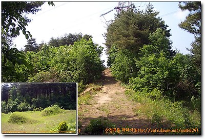 x615봉 좌측임도에 내려서 세멘트도로를 따라 올라서면 송전탑이 나오고 임도는 여기서 651.3봉을 우측에 끼고