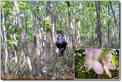 15 : 15. 낙엽송,조선송지대 지나며 좌측 사면길로 가지 말고 직진해오름.길주의지역.