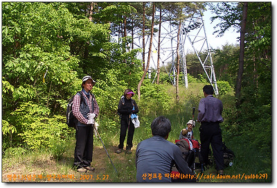 앞에가던 일행몇명은 임도를 따라가다가 되 돌아오고 그냥 임도를 더 따라갔던 회장인과 두명은 중간에 절개면을 치고 올라오고