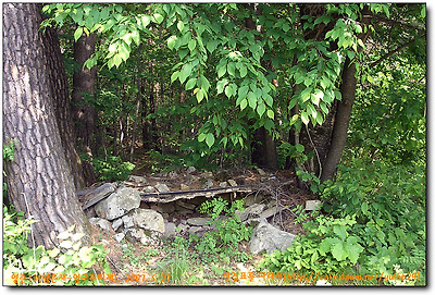 방가곡고개.좌측에있는 심마니터인지 성황당인지 이 뒤로 지맥길이 이어진다.