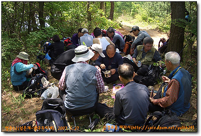 간이 식당에서 한잔 푸고 있는 선두팀(고장군님,정영옥님,오세춘님,정환규님,최종범님)이타고