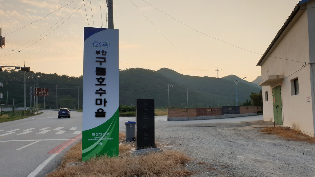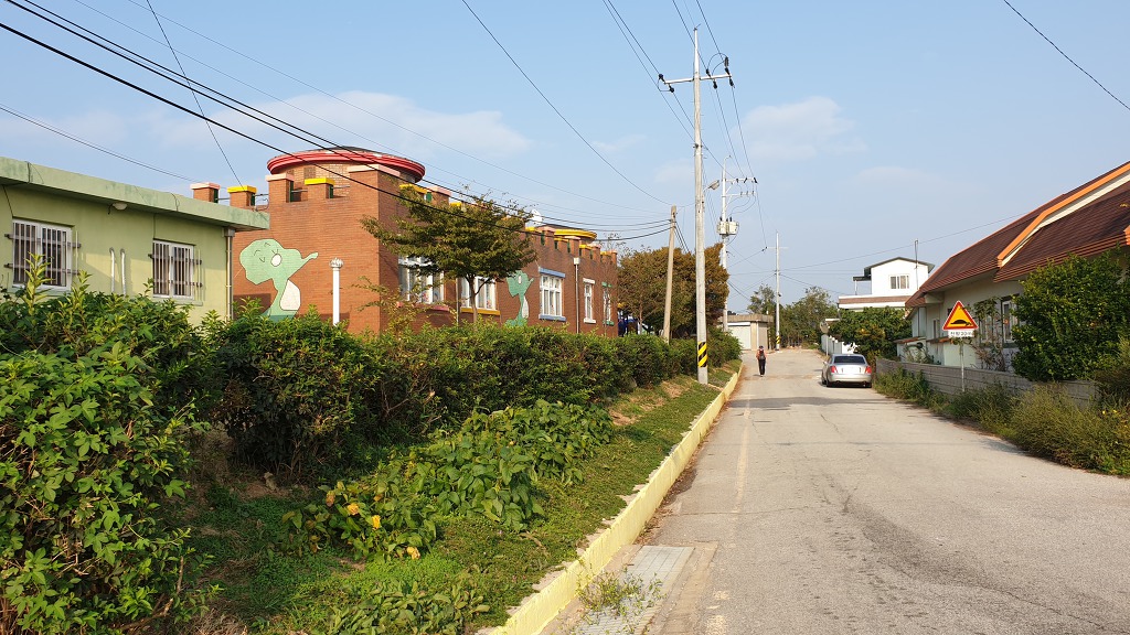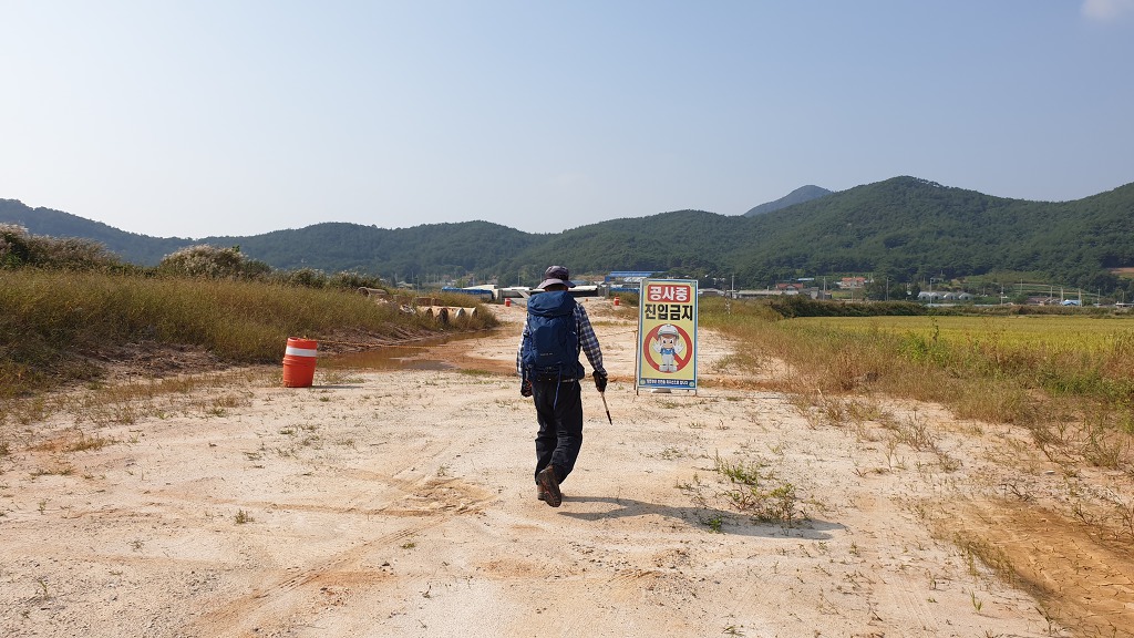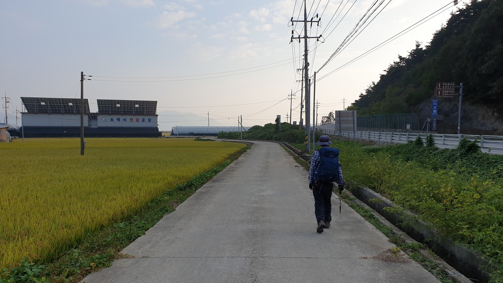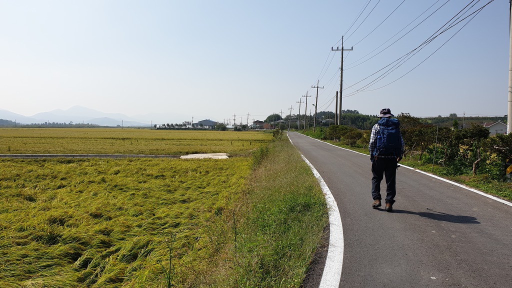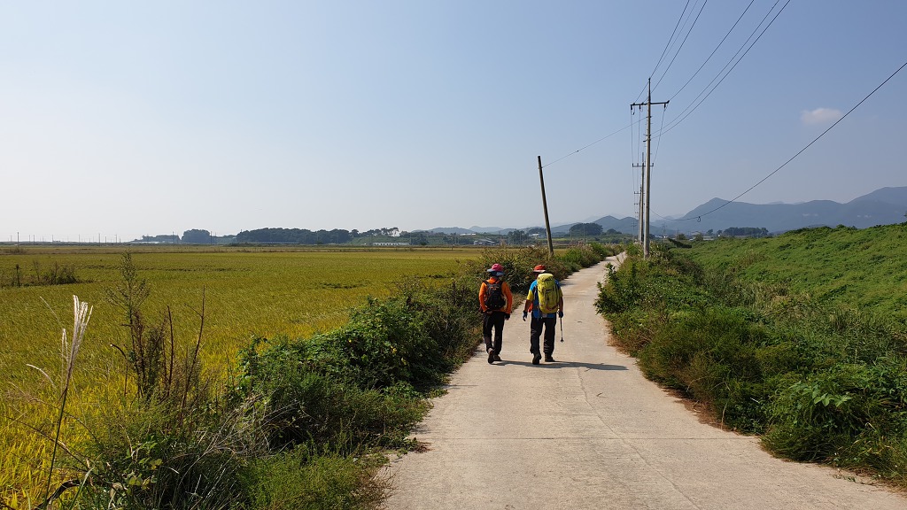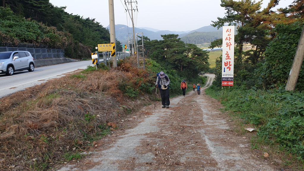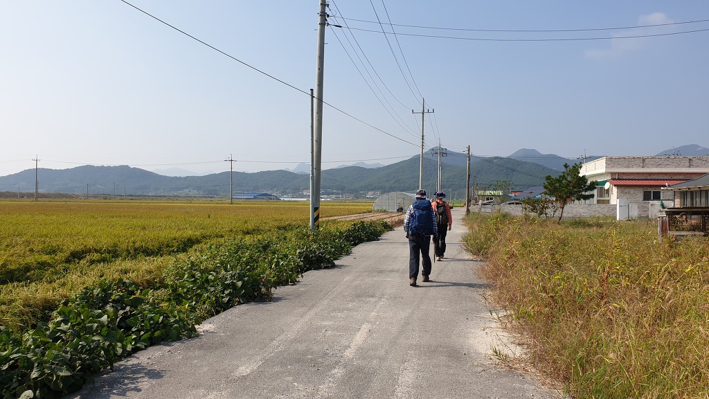 이어 마실길은 왼쪽 운호방조제 쪽으로 내려가고 우리는 도로 따라 직진.