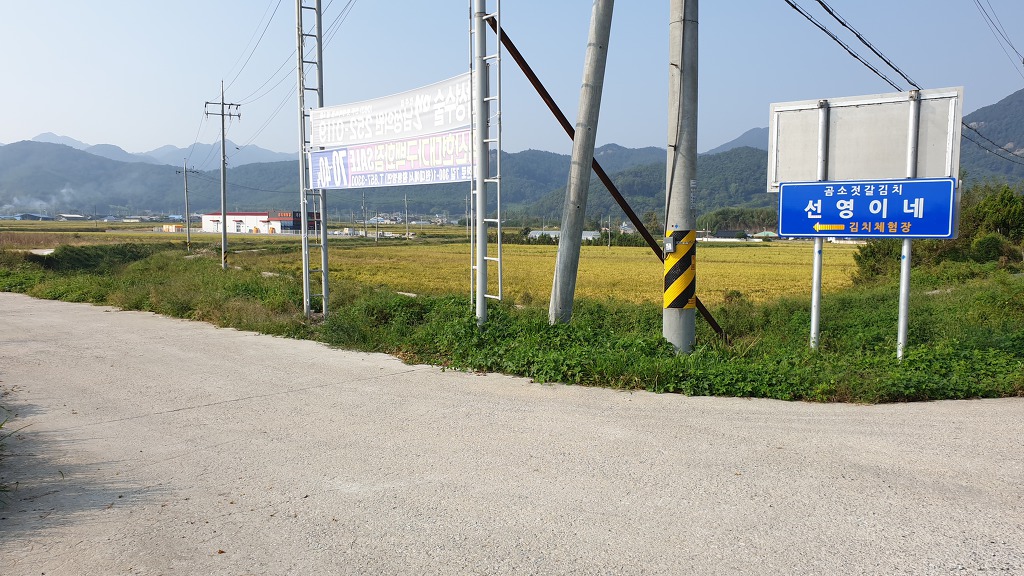 15:02 구진마을 - 부안마실길 이정표. 2차로가 이어진다.