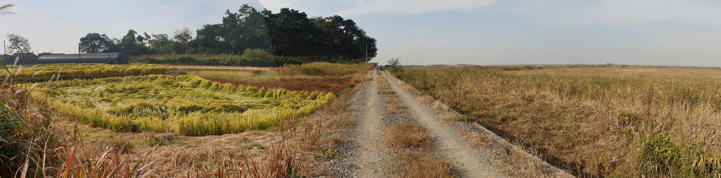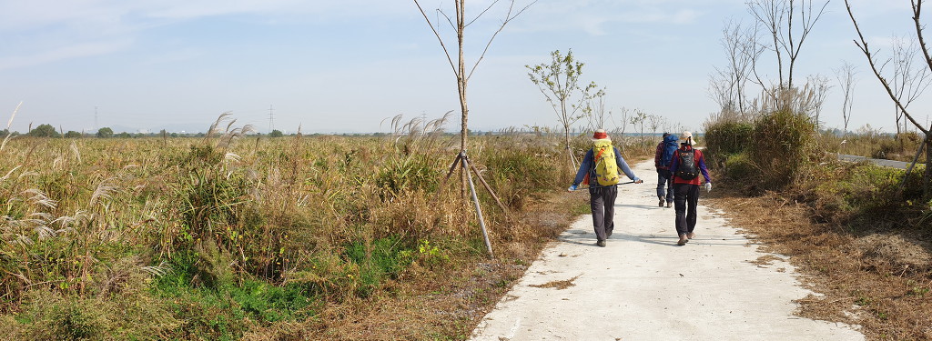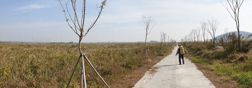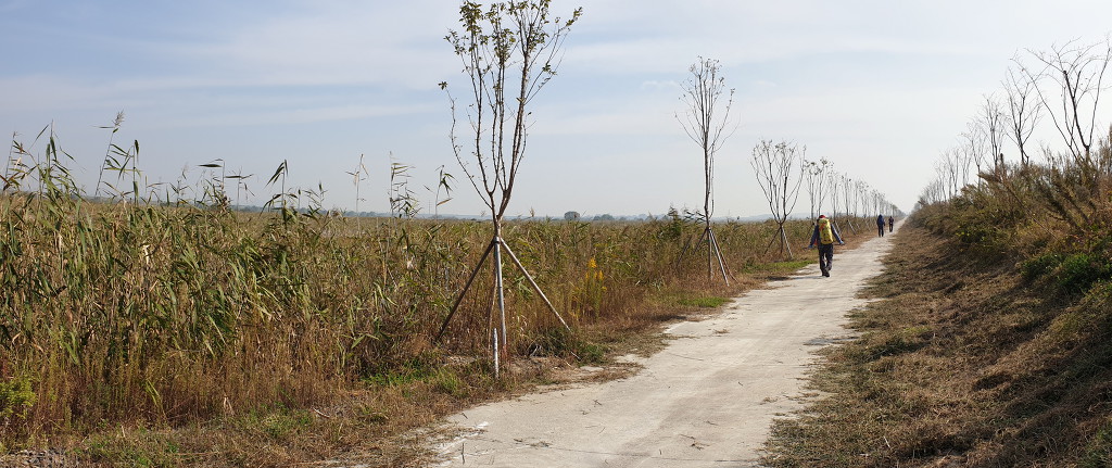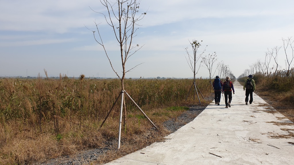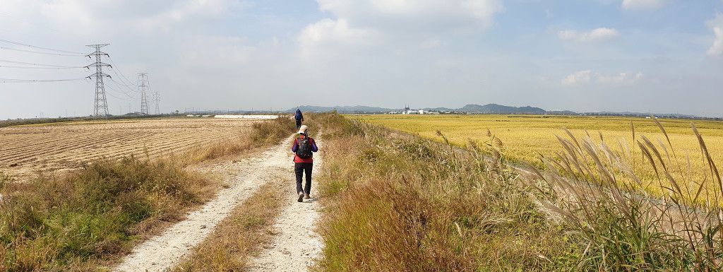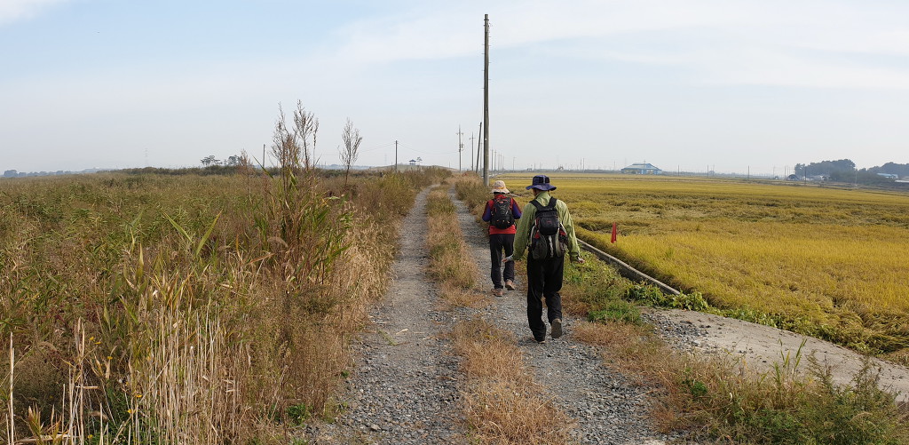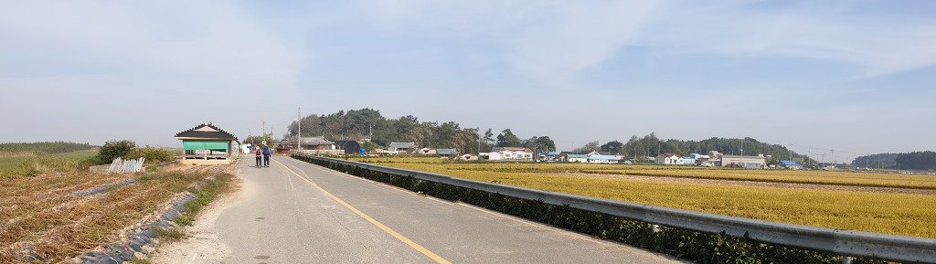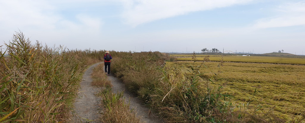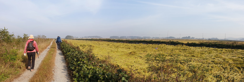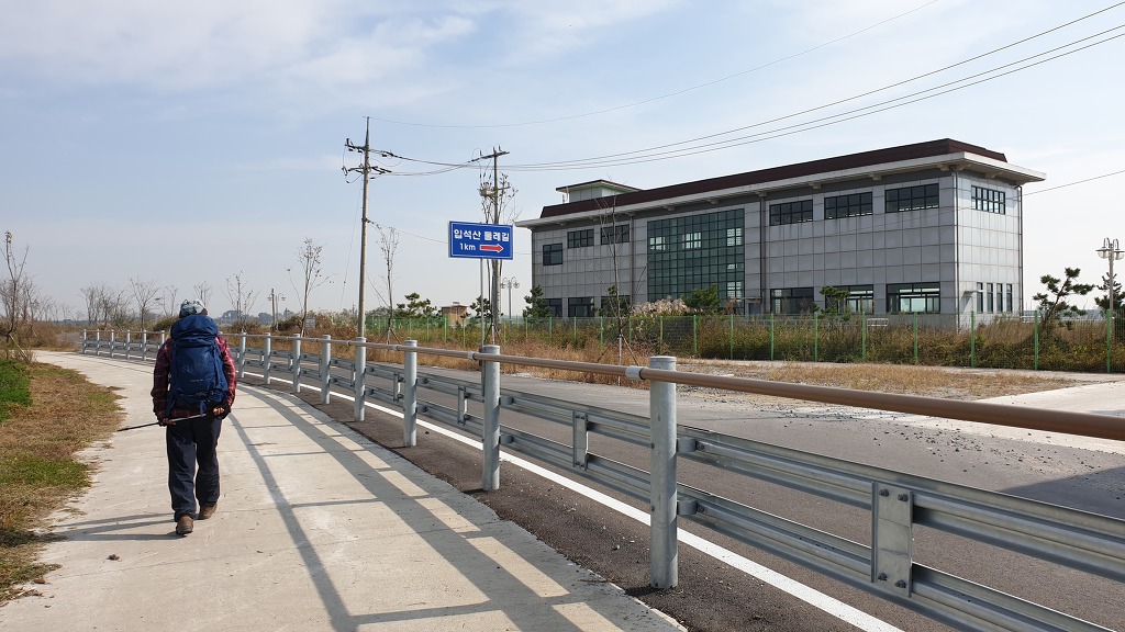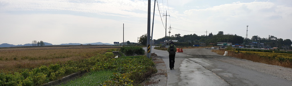 09:05 새만금 광역탐방로 표지목-오른쪽에서 오는 2차로 따라 화포마을 바라보며.