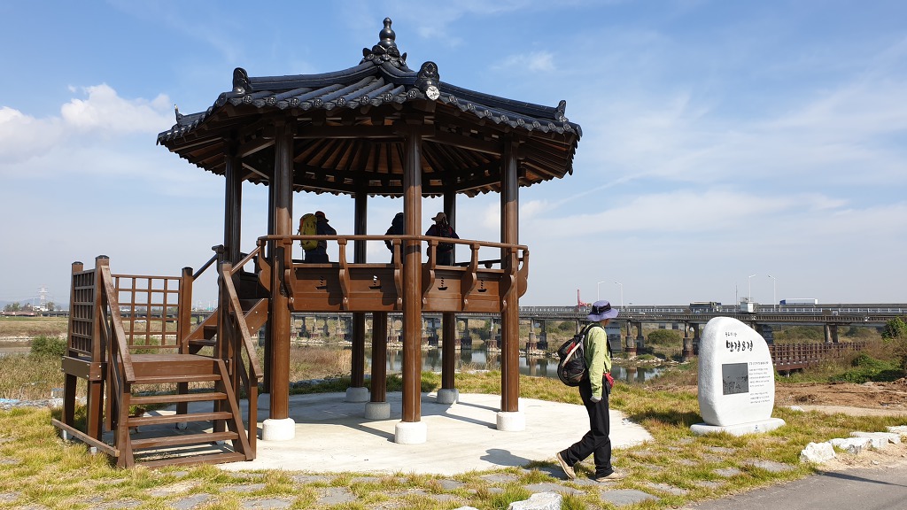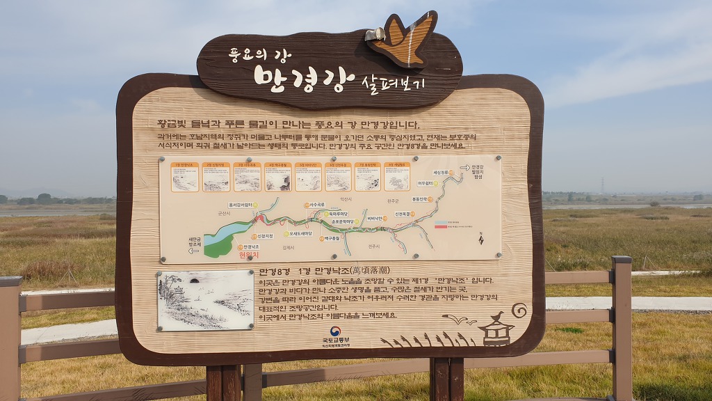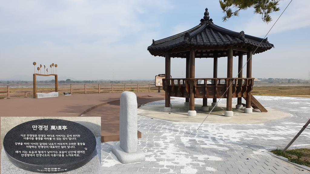 09:39~09:53 토정마을 북서 쪽 만경강변의 정자 - 만경8경중 제1경 만경낙조 표지석.