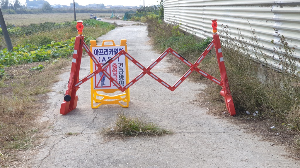 14:47 아프리카열병 긴급방역 출입금지 표지판