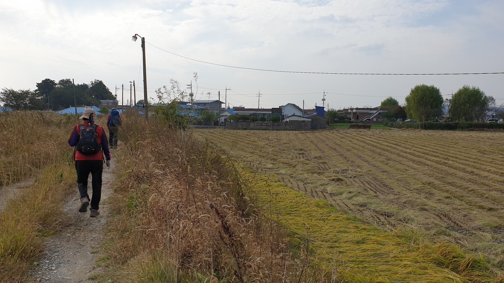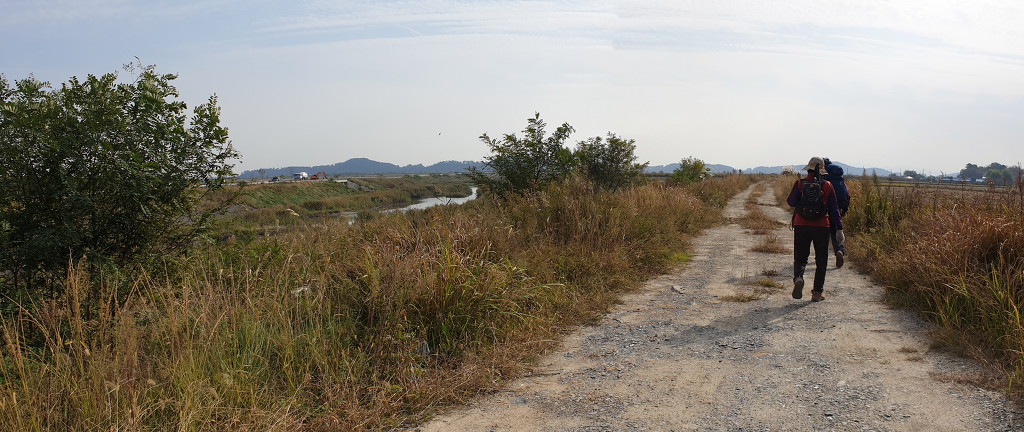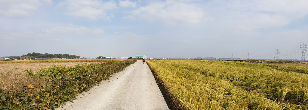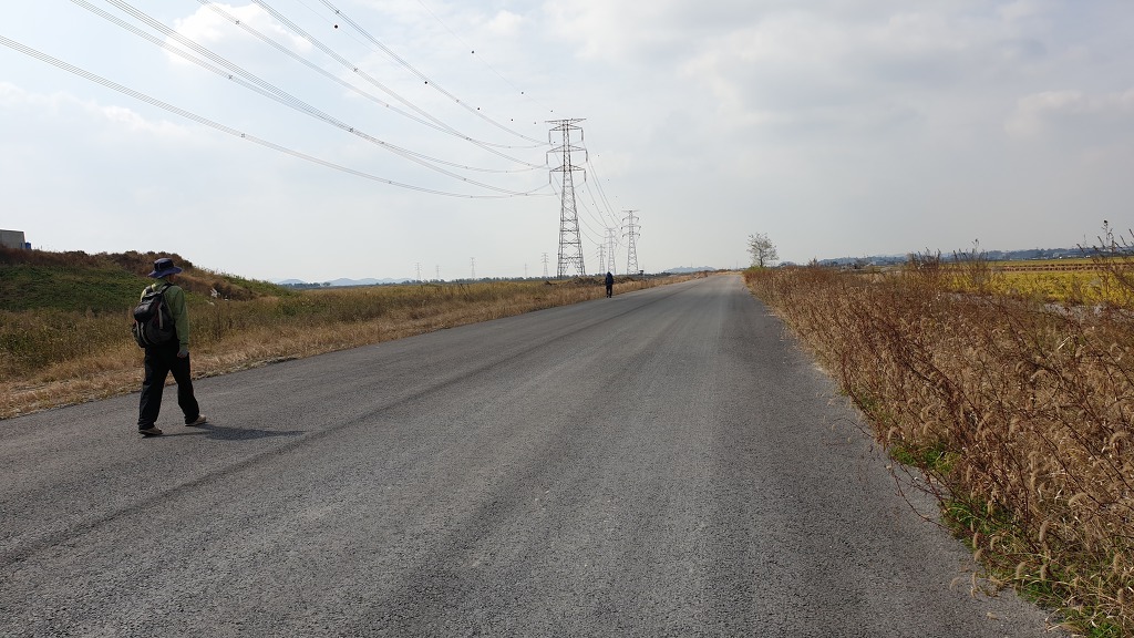 07:45 지방도 버리고 왼쪽 수로와 같이 가는 농로로.
