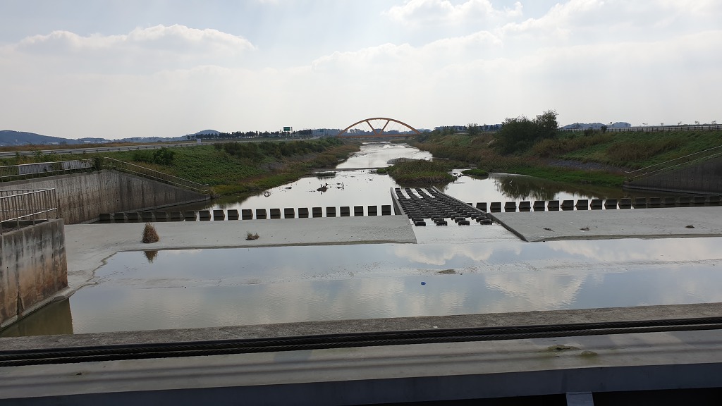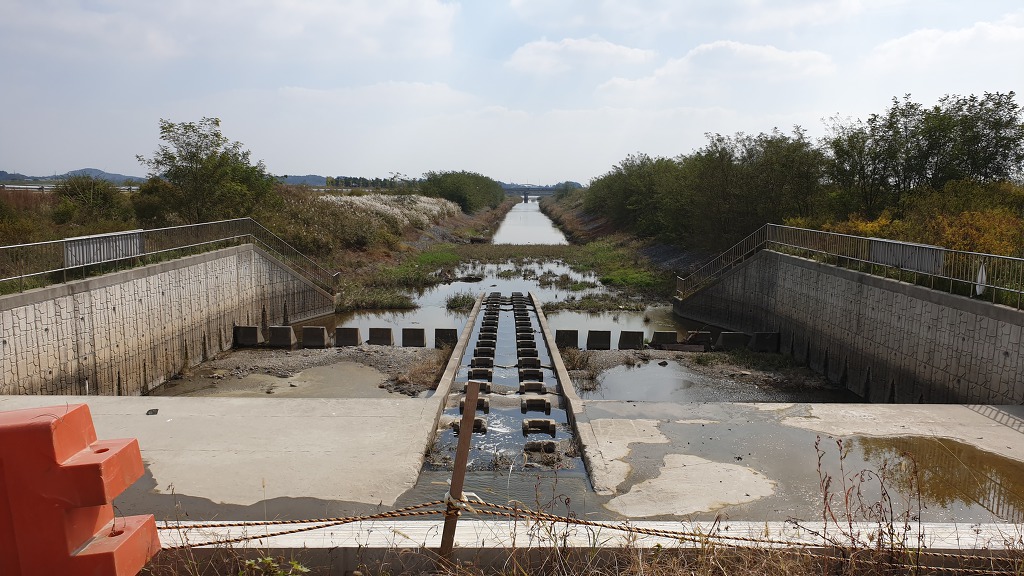 08:47 몽산배수문 - 왼쪽에 수로를 끼고.