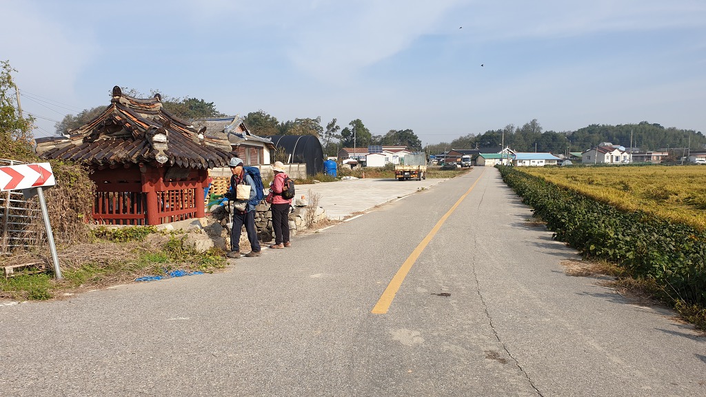 마을 표지석. 마을회관. 버스정류장 이름을 보고서야 어느 동네를 지나는지 알 수 있다.