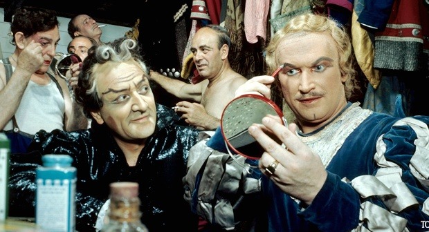 무대뒤 분장실에서 메이크업을 하고있는 오페라 가수들