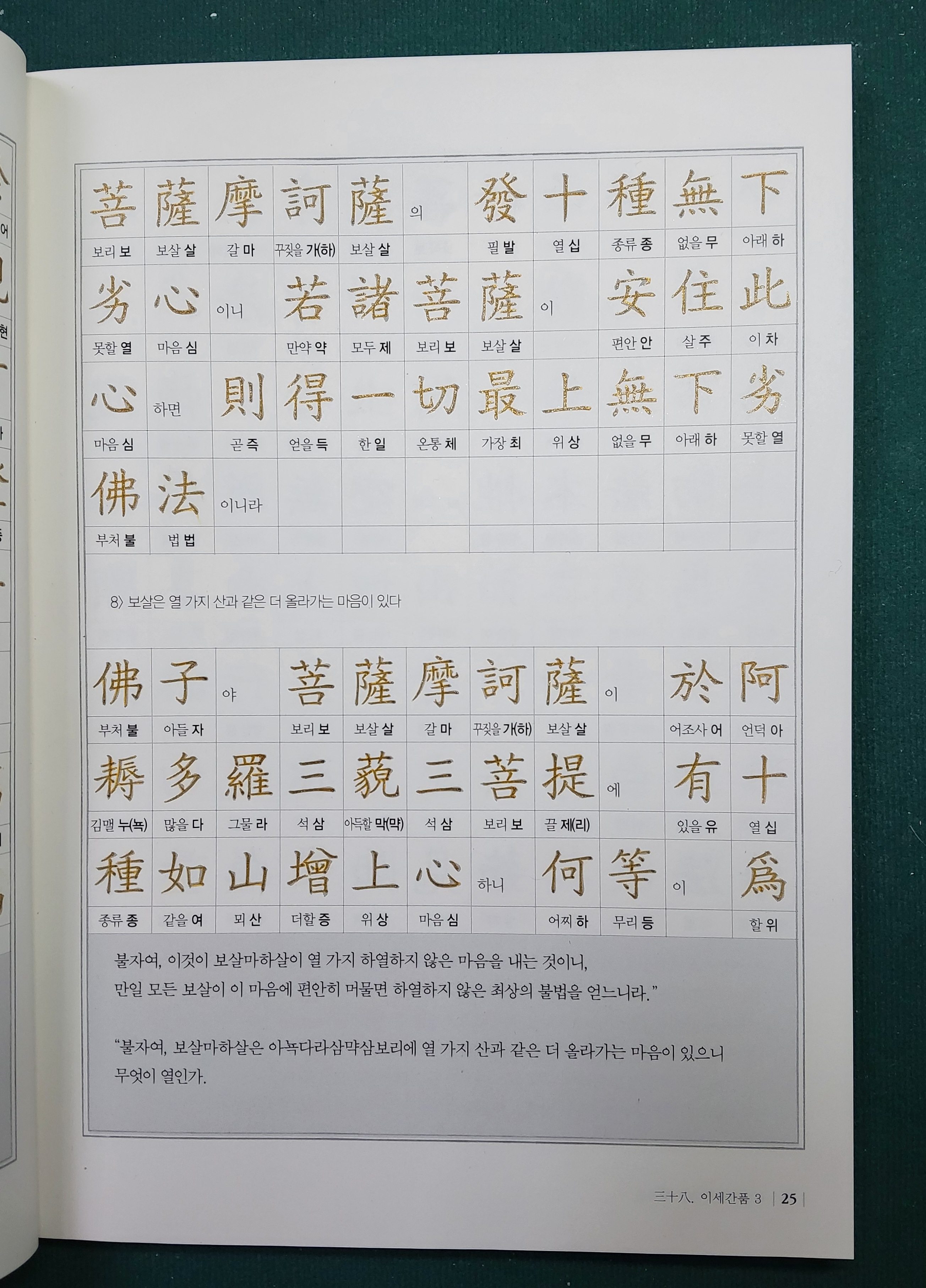 "불자여, 보살마하살은 아뇩다라삼먁삼보리에 열 가지 산과 같은 더 올라가는 마음이 있으니 무엇이 열인가.