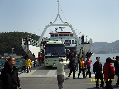 우리가 타고간 배 대형 뻐스 10대하고 승용차도 여남대 실을 정도로 크다
