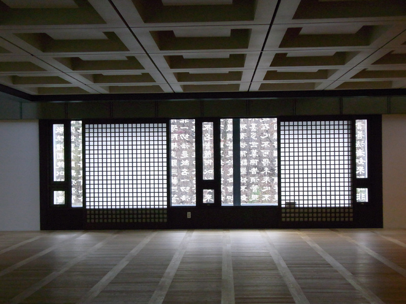 외벽의 금강경 전문이 보광명전 안으로 은은하게 비춰진다