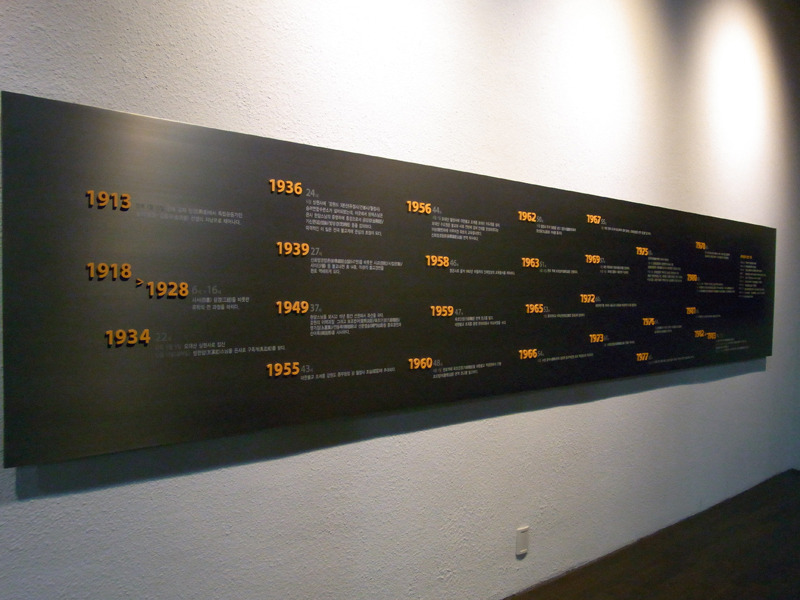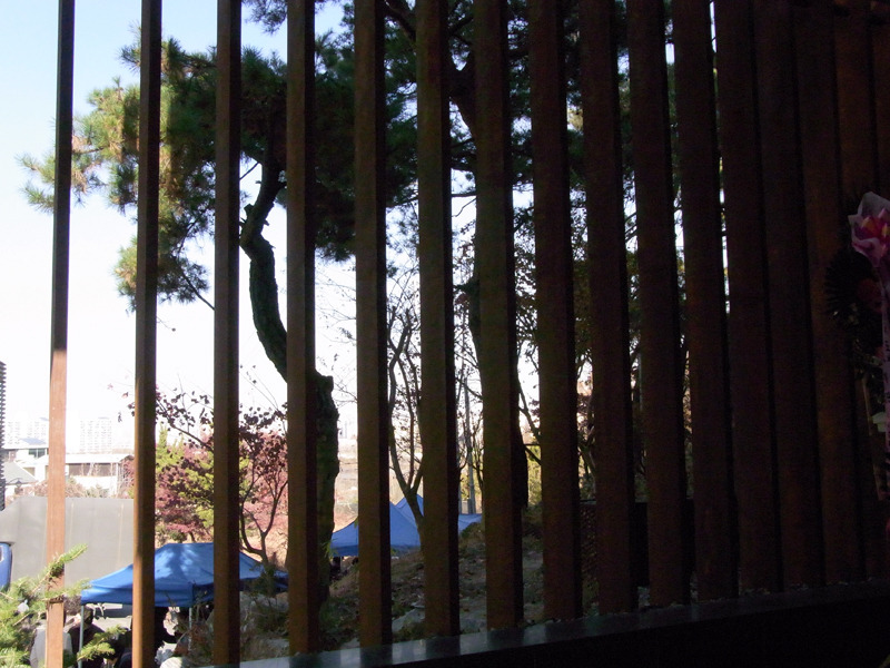 박물관에 들어서면 백팔번뇌를 의미하는 108개의 녹슨 철로 된 막대기둥을 만나는데