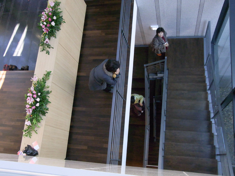 3층에서 지하로 이어지는 계단이 친환경적이면서 예술이다