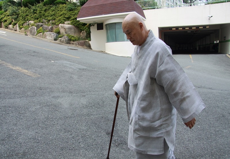 유리문앞에서 “큰스님” 하고 불렀더니 방안에서 “네.” 하고 대답하신다.