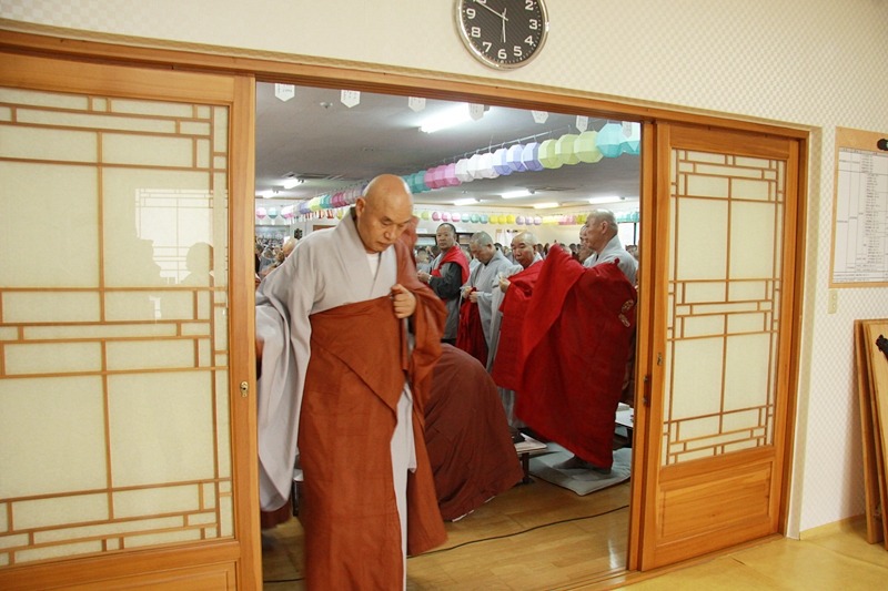 법회가 끝나고, 가사를 벗으시는데