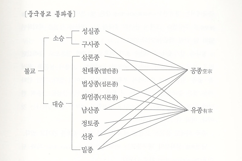 위에서 소개한 종파들을 보면 그 범위가 방대하다고 말할 수 있지만, 당나라 후기 이후의 중국불교에서 소승은 별로 중시되지 못했다. 삼론종과 유식종(법상종)은 연구한 사람이 거의 없었고, 밀종은 중국에서 잠시 잠깐 지속되었을 뿐이다.